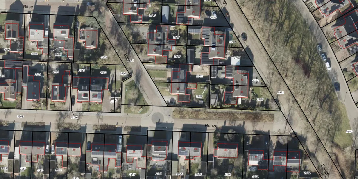 Het perceel waarop Bitse 23 staat heeft een oppervlakte van 364 m². Dit is een groot perceel. De perceeloppervlakte wordt geregistreerd door het Kadaster. Gedetailleerde informatie over de maten van dit perceel kunt u vinden in het rapport Kadastrale kaart met maatvoering van Bitse 23.
