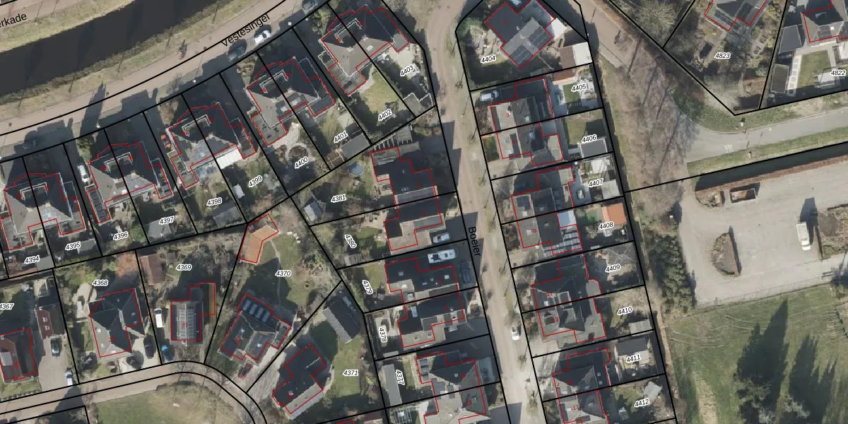 Het perceel waarop Boeier 4 staat heeft een oppervlakte van 389 m². Dit is een groot perceel. De perceeloppervlakte wordt geregistreerd door het Kadaster. Gedetailleerde informatie over de maten van dit perceel kunt u vinden in het rapport Kadastrale kaart met maatvoering van Boeier 4.