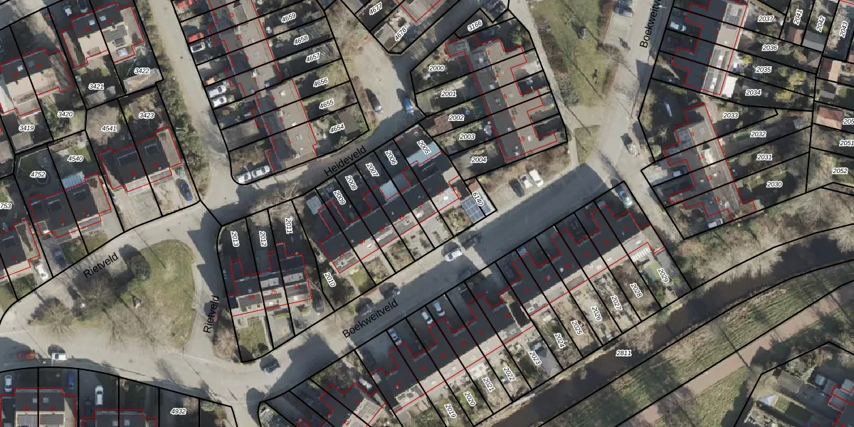 Gebruik de zoekbalk of klik op een perceel voor informatie over de adressen binnen dit perceel.