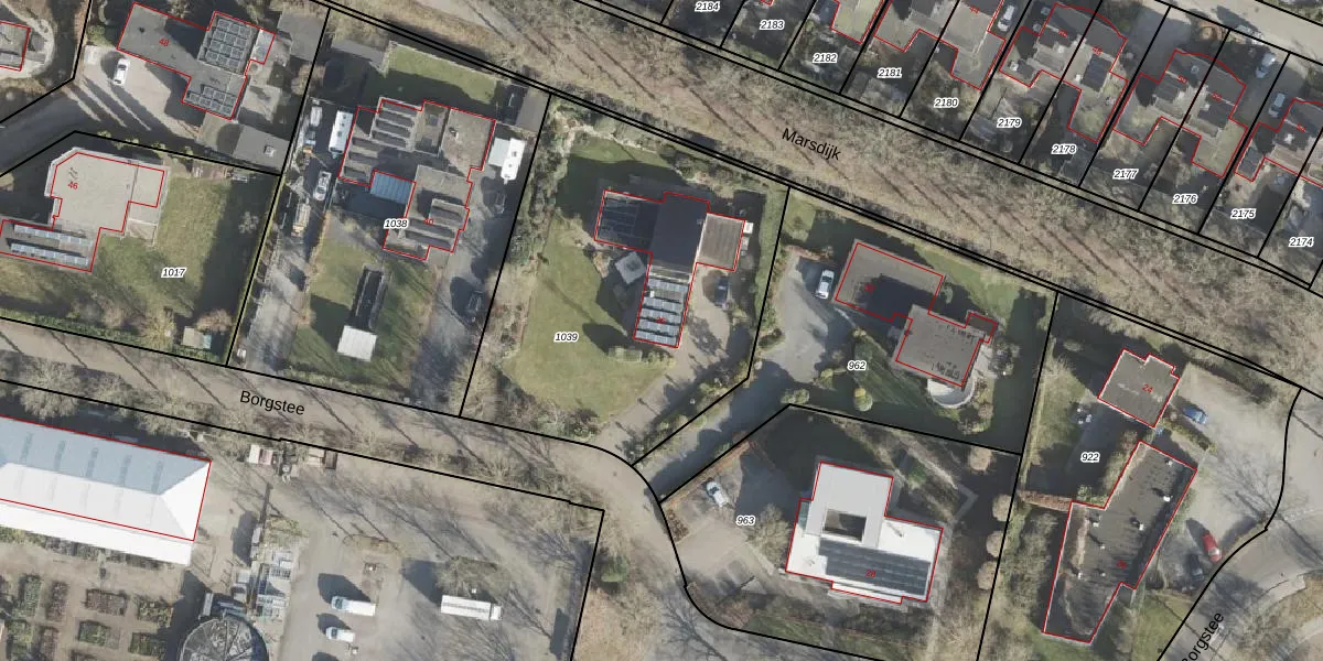 Gebruik de zoekbalk of klik op een perceel voor informatie over de adressen binnen dit perceel.