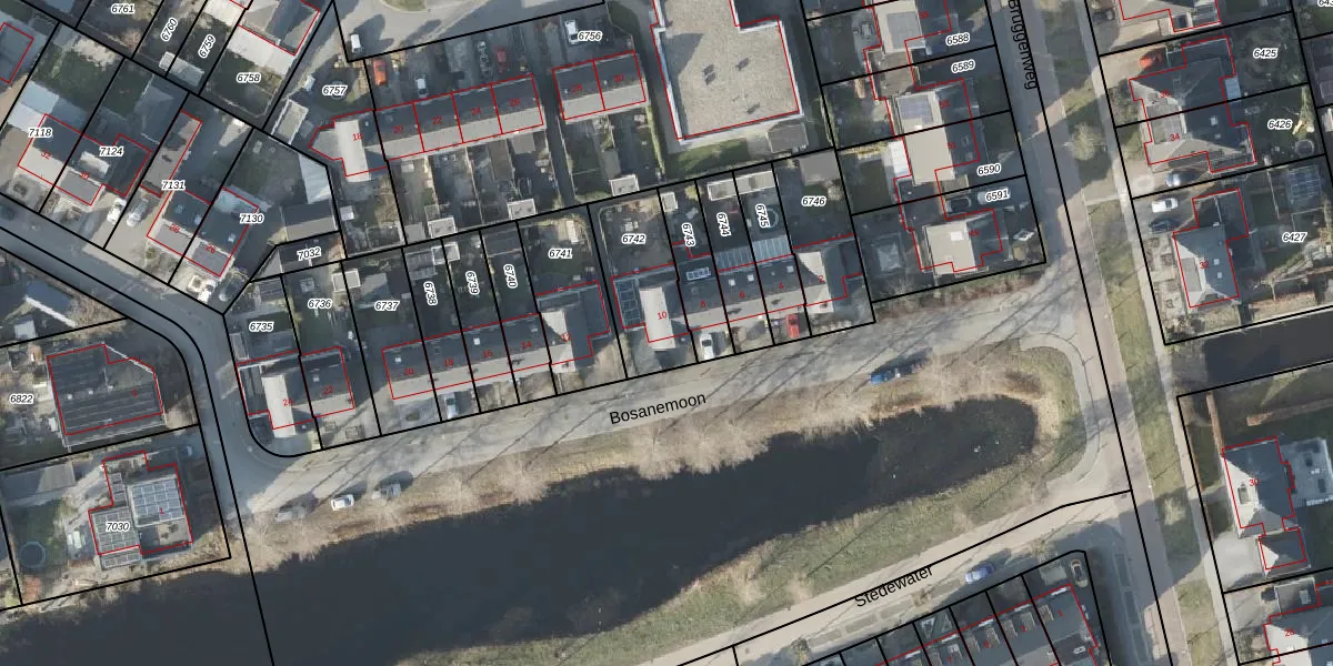 Bosanemoon 10 is gelegen op kadastraal perceel ASN00Q6742. Deze kadastrale aanduiding is uniek en wordt gebruikt door het Kadaster om eigendomsrechten en andere zakelijke rechten vast te leggen. Het perceel maakt onderdeel uit van de kadastrale gemeente Assen.