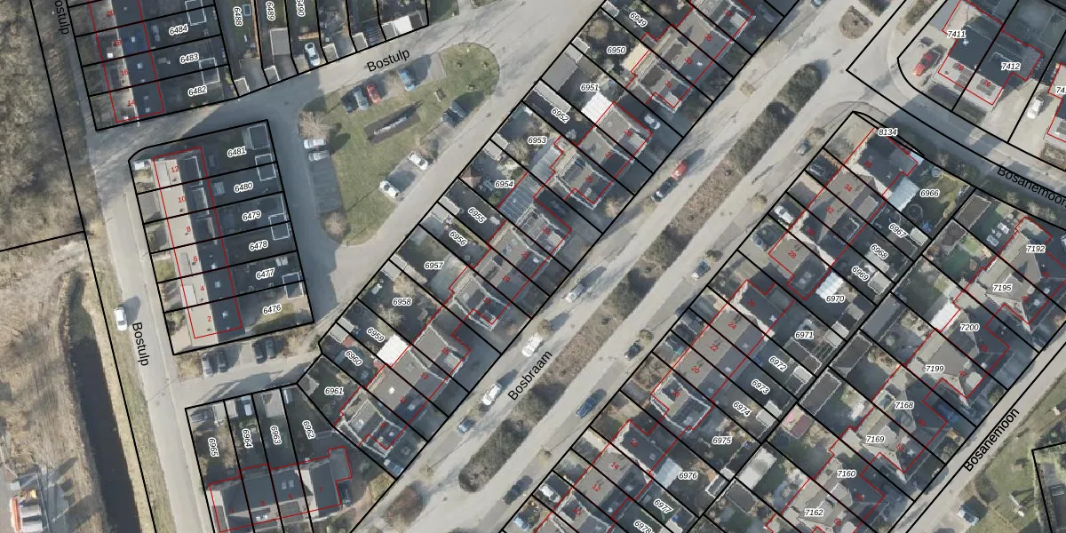 Gebruik de zoekbalk of klik op een perceel voor informatie over de adressen binnen dit perceel.
