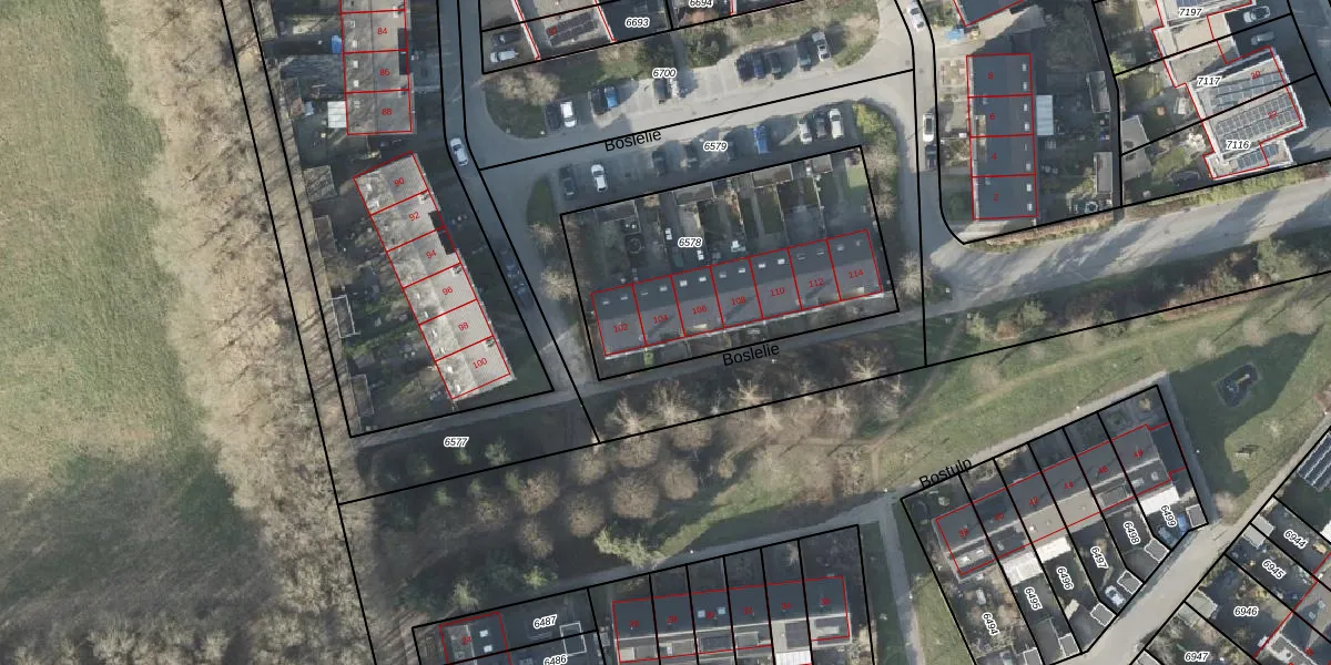 Het perceel waarop Boslelie 104 staat heeft een oppervlakte van 1179 m². Dit is een zeer groot perceel. De perceeloppervlakte wordt geregistreerd door het Kadaster. Gedetailleerde informatie over de maten van dit perceel kunt u vinden in het rapport Kadastrale kaart met maatvoering van Boslelie 104.