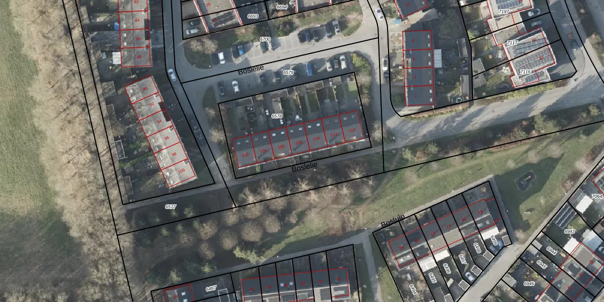 Het perceel waarop Boslelie 108 staat heeft een oppervlakte van 1179 m². Dit is een zeer groot perceel. De perceeloppervlakte wordt geregistreerd door het Kadaster. Gedetailleerde informatie over de maten van dit perceel kunt u vinden in het rapport Kadastrale kaart met maatvoering van Boslelie 108.
