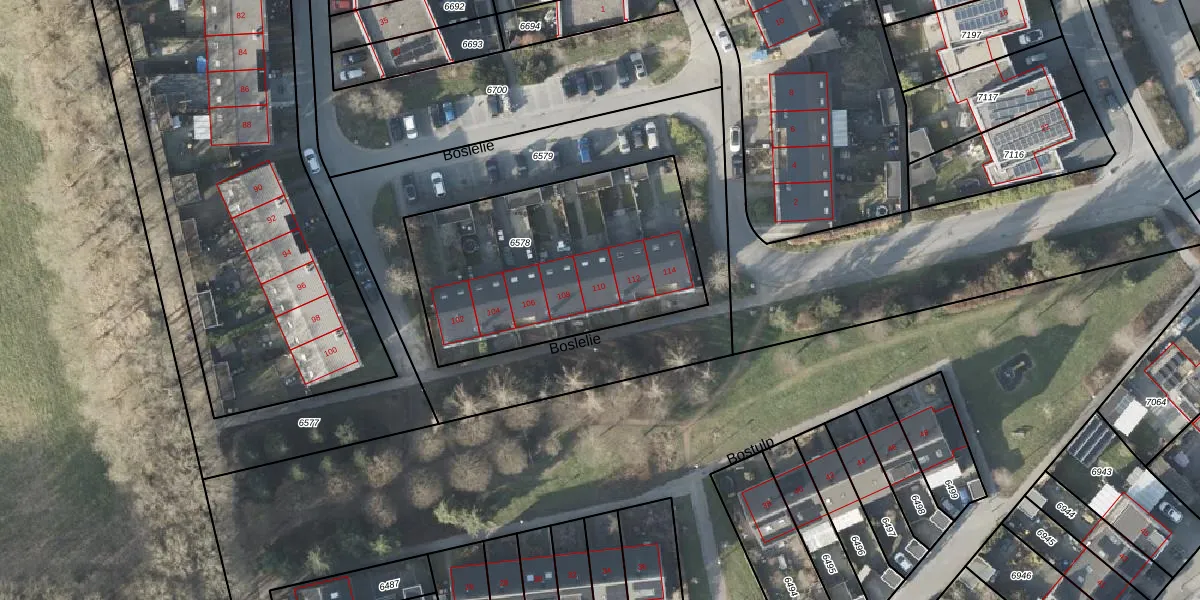 Het perceel waarop Boslelie 110 staat heeft een oppervlakte van 1179 m². Dit is een zeer groot perceel. De perceeloppervlakte wordt geregistreerd door het Kadaster. Gedetailleerde informatie over de maten van dit perceel kunt u vinden in het rapport Kadastrale kaart met maatvoering van Boslelie 110.