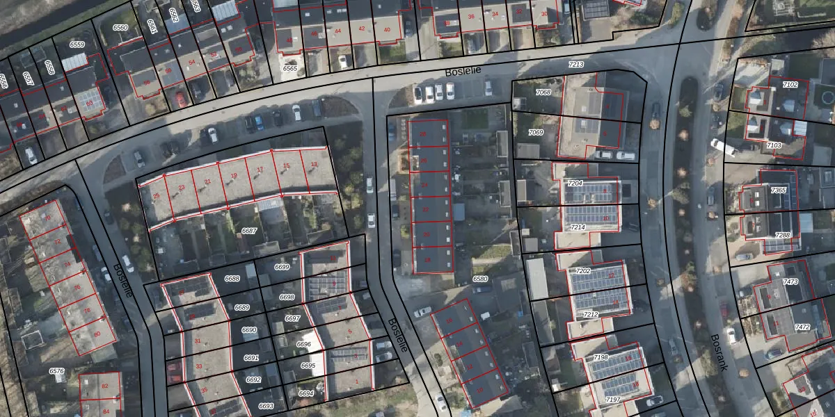 Het perceel waarop Boslelie 22 staat heeft een oppervlakte van 2932 m². Dit is een zeer groot perceel. De perceeloppervlakte wordt geregistreerd door het Kadaster. Gedetailleerde informatie over de maten van dit perceel kunt u vinden in het rapport Kadastrale kaart met maatvoering van Boslelie 22.