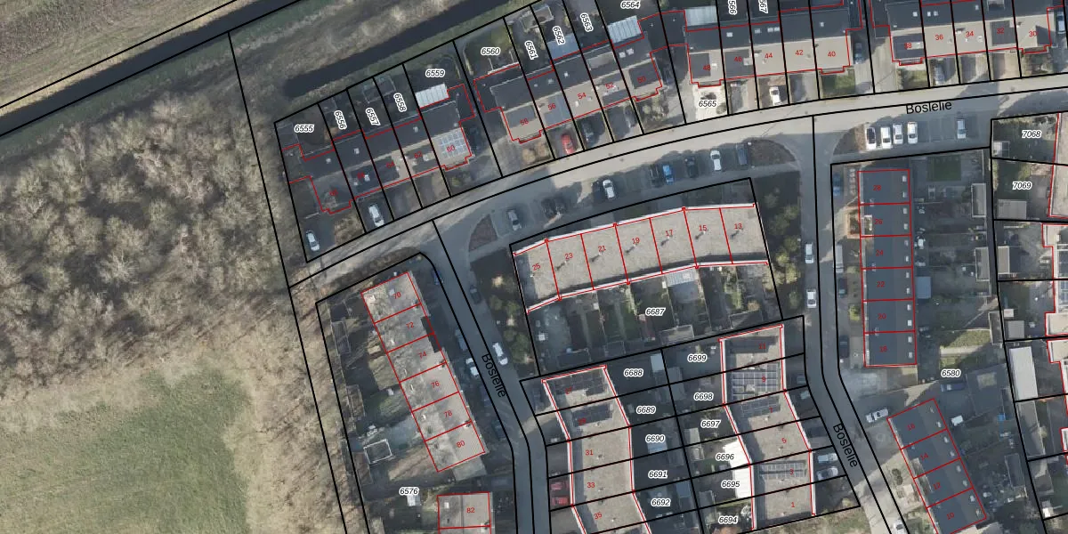 Het perceel waarop Boslelie 25 staat heeft een oppervlakte van 1259 m². Dit is een zeer groot perceel. De perceeloppervlakte wordt geregistreerd door het Kadaster. Gedetailleerde informatie over de maten van dit perceel kunt u vinden in het rapport Kadastrale kaart met maatvoering van Boslelie 25.