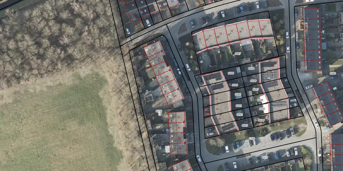 Het perceel waarop Boslelie 78 staat heeft een oppervlakte van 2990 m². Dit is een zeer groot perceel. De perceeloppervlakte wordt geregistreerd door het Kadaster. Gedetailleerde informatie over de maten van dit perceel kunt u vinden in het rapport Kadastrale kaart met maatvoering van Boslelie 78.