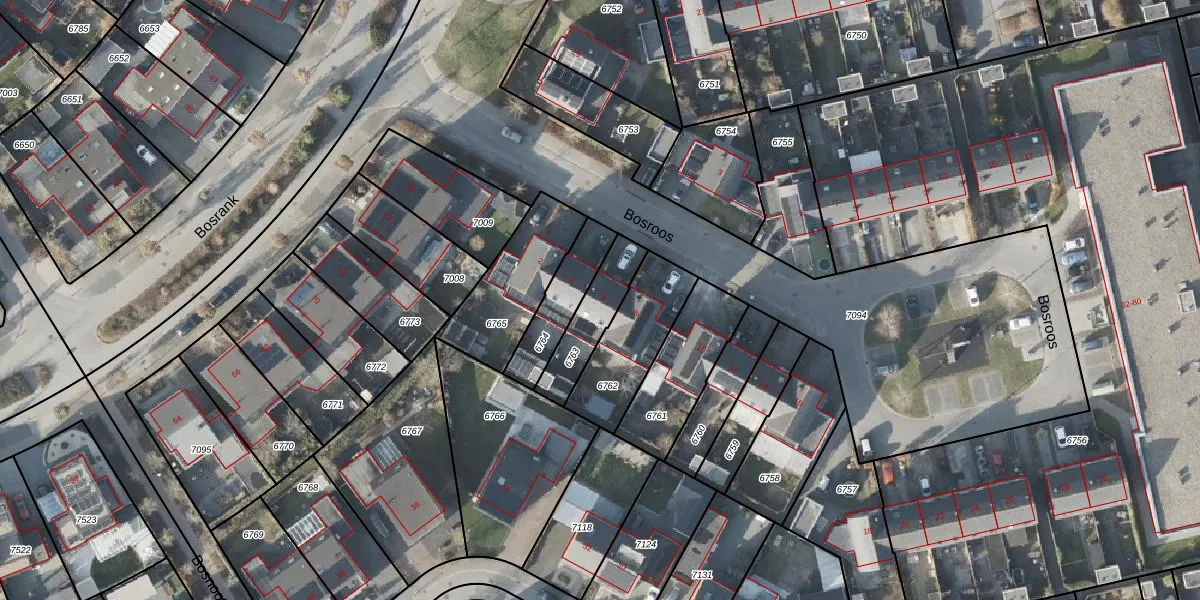 Gebruik de zoekbalk of klik op een perceel voor informatie over de adressen binnen dit perceel.