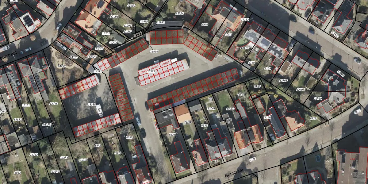 Het perceel waarop Bosstraat 18-16 staat heeft een oppervlakte van 3071 m². Dit is een zeer groot perceel. De perceeloppervlakte wordt geregistreerd door het Kadaster. Gedetailleerde informatie over de maten van dit perceel kunt u vinden in het rapport Kadastrale kaart met maatvoering van Bosstraat 18-16.