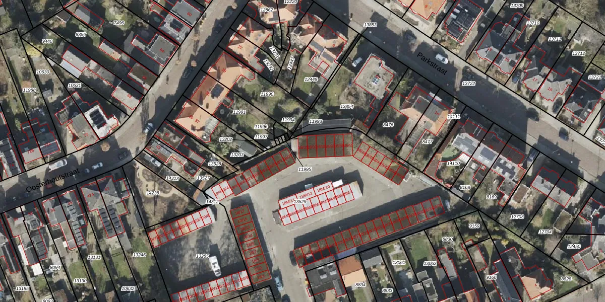 Het perceel waarop Bosstraat 18-31 staat heeft een oppervlakte van 3071 m². Dit is een zeer groot perceel. De perceeloppervlakte wordt geregistreerd door het Kadaster. Gedetailleerde informatie over de maten van dit perceel kunt u vinden in het rapport Kadastrale kaart met maatvoering van Bosstraat 18-31.