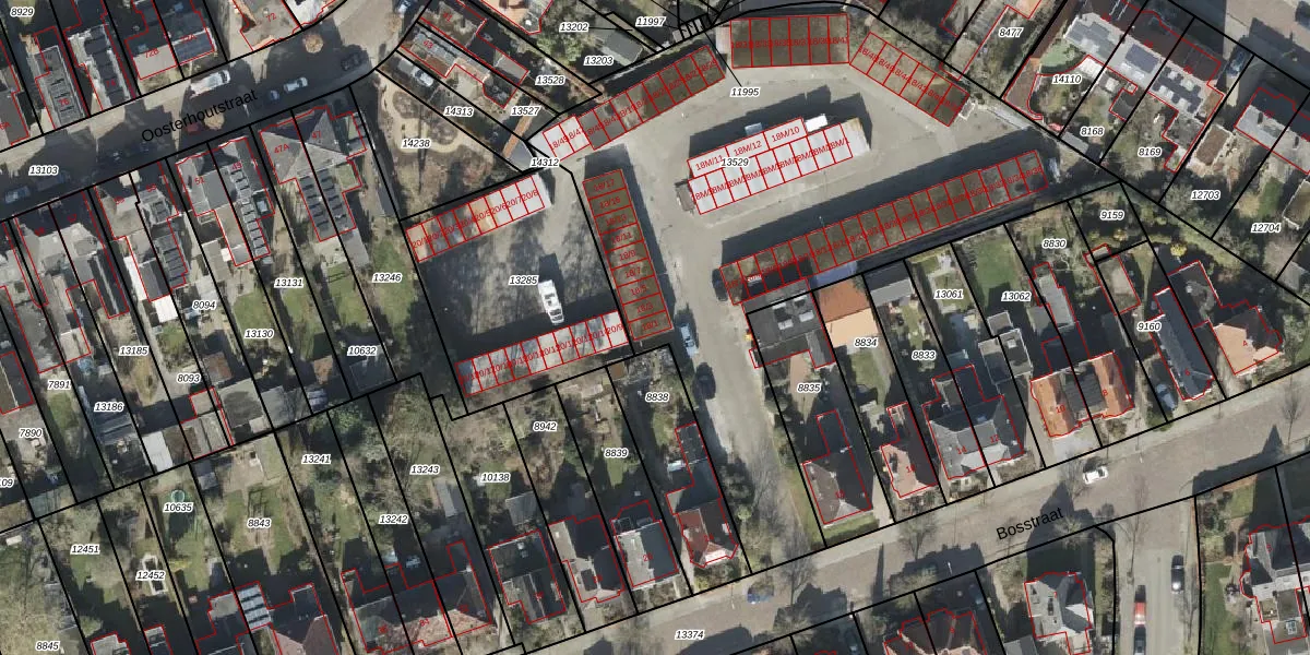 Het perceel waarop Bosstraat 18-1 staat heeft een oppervlakte van 3071 m². Dit is een zeer groot perceel. De perceeloppervlakte wordt geregistreerd door het Kadaster. Gedetailleerde informatie over de maten van dit perceel kunt u vinden in het rapport Kadastrale kaart met maatvoering van Bosstraat 18-1.