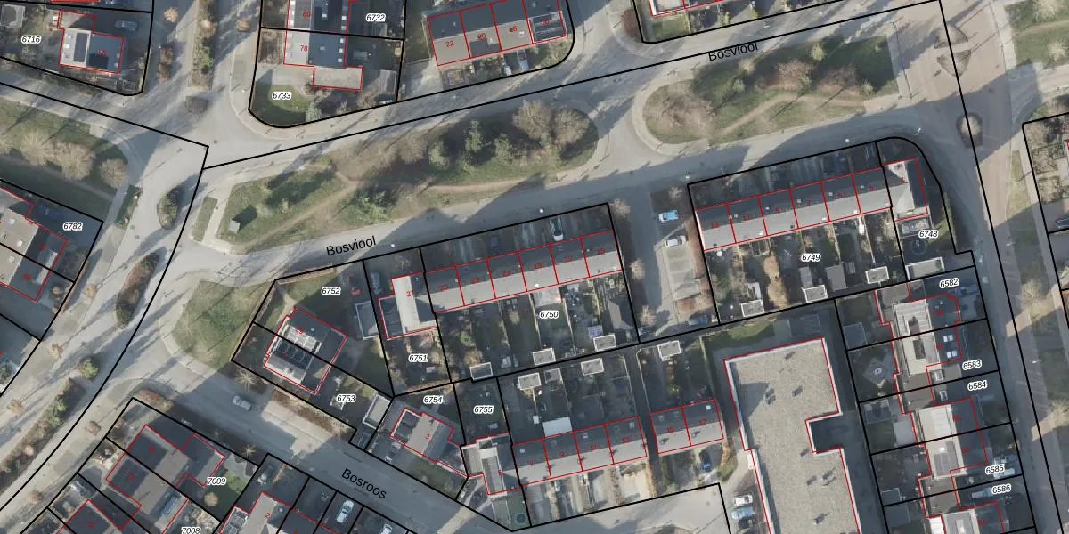 Het perceel waarop Bosviool 19 staat heeft een oppervlakte van 974 m². Dit is een groot perceel. De perceeloppervlakte wordt geregistreerd door het Kadaster. Gedetailleerde informatie over de maten van dit perceel kunt u vinden in het rapport Kadastrale kaart met maatvoering van Bosviool 19.