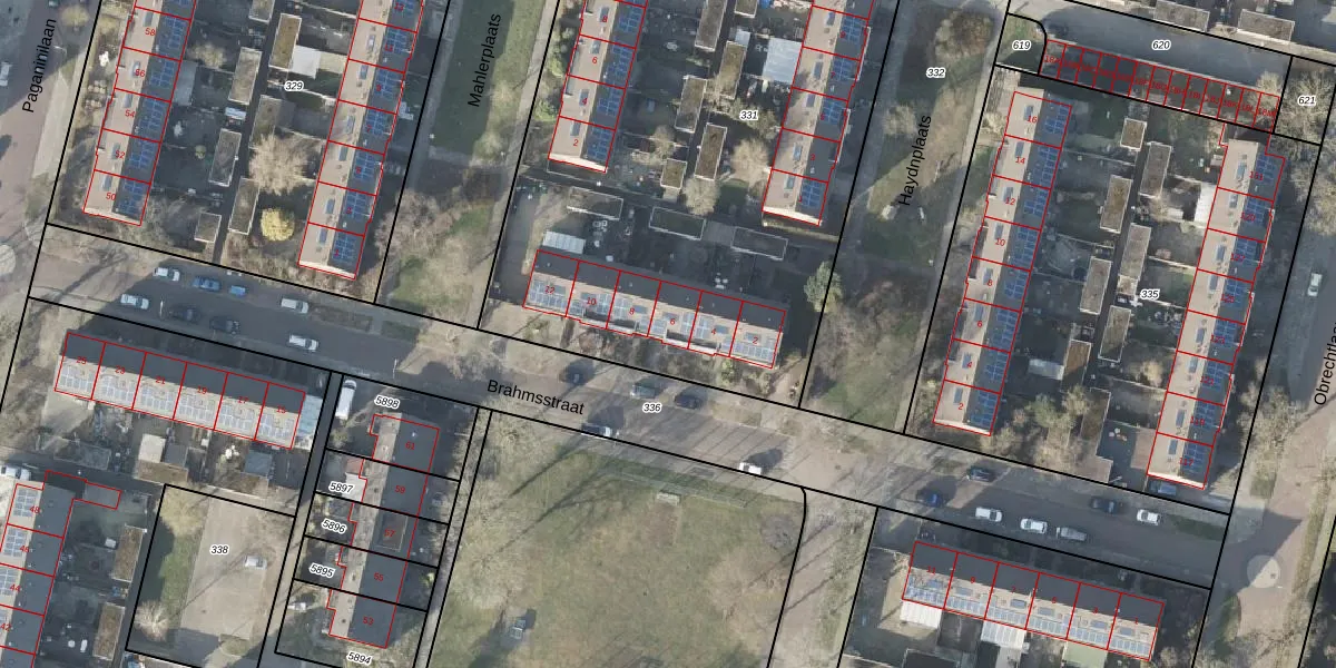 Het perceel waarop Brahmsstraat 6 staat heeft een oppervlakte van 4405 m². Dit is een zeer groot perceel. De perceeloppervlakte wordt geregistreerd door het Kadaster. Gedetailleerde informatie over de maten van dit perceel kunt u vinden in het rapport Kadastrale kaart met maatvoering van Brahmsstraat 6.