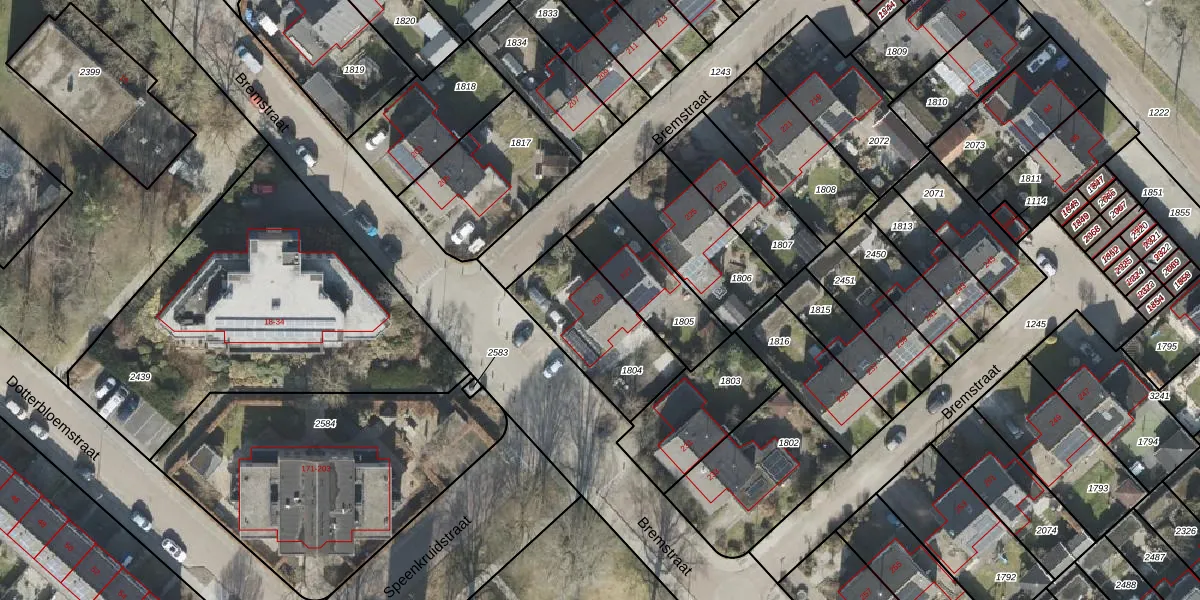 Gebruik de zoekbalk of klik op een perceel voor informatie over de adressen binnen dit perceel.