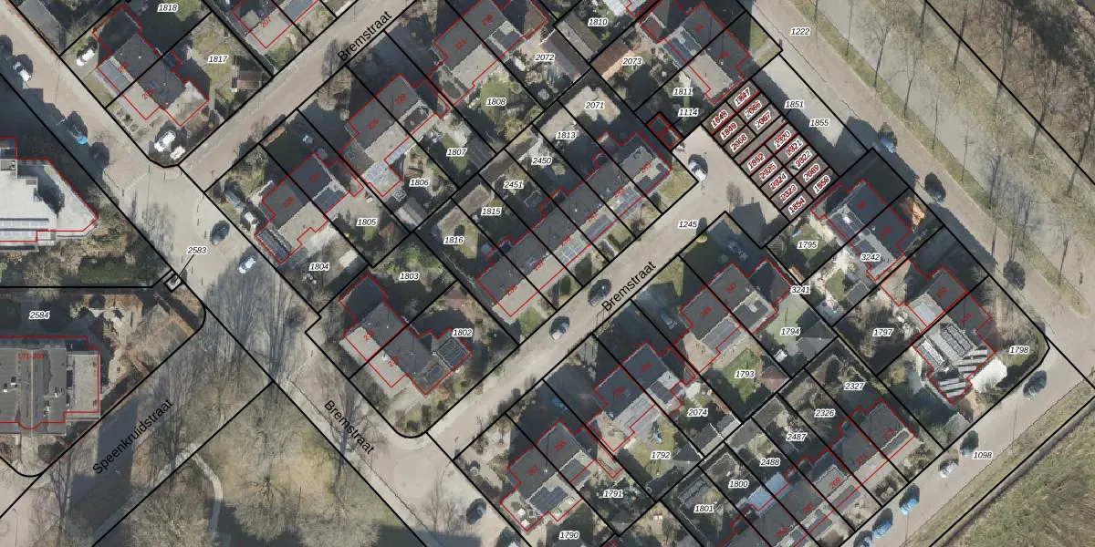 Gebruik de zoekbalk of klik op een perceel voor informatie over de adressen binnen dit perceel.
