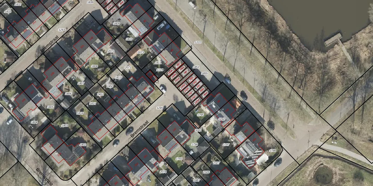 Het perceel waarop Bremstraat 245-E staat heeft een oppervlakte van 16 m². Dit is een klein perceel. De perceeloppervlakte wordt geregistreerd door het Kadaster. Gedetailleerde informatie over de maten van dit perceel kunt u vinden in het rapport Kadastrale kaart met maatvoering van Bremstraat 245-E.