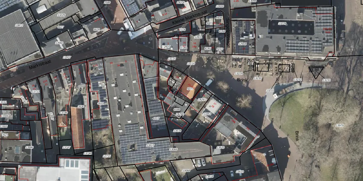 Het perceel waarop Brink 24-A staat heeft een oppervlakte van 114 m². Dit is een middelgroot perceel. De perceeloppervlakte wordt geregistreerd door het Kadaster. Gedetailleerde informatie over de maten van dit perceel kunt u vinden in het rapport Kadastrale kaart met maatvoering van Brink 24-A.