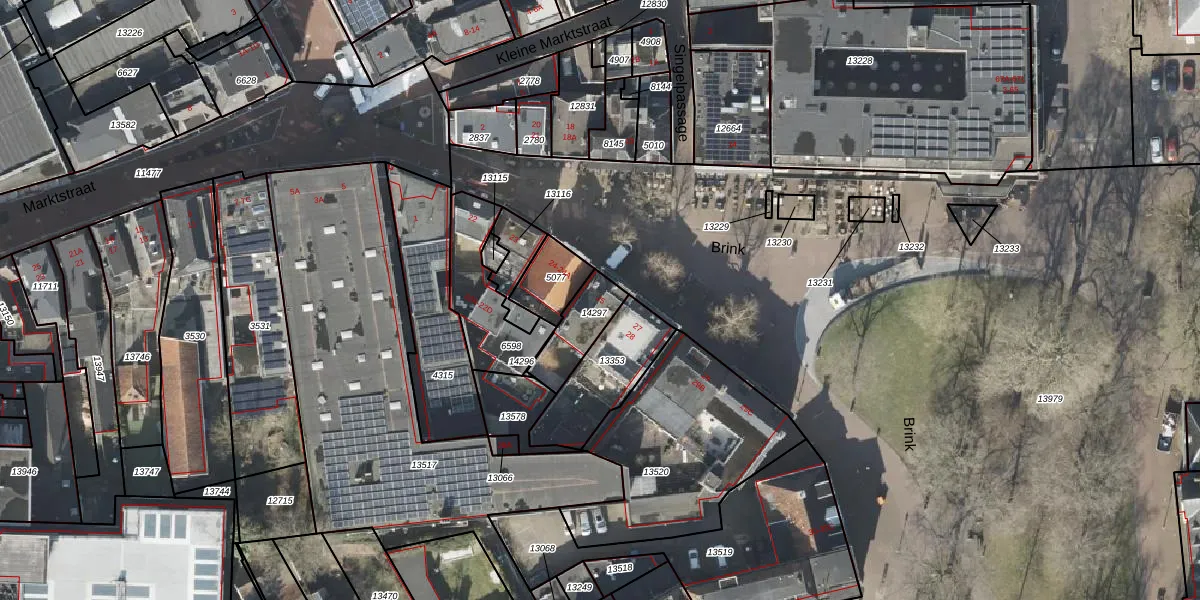 Het perceel waarop Brink 25 staat heeft een oppervlakte van 141 m². Dit is een middelgroot perceel. De perceeloppervlakte wordt geregistreerd door het Kadaster. Gedetailleerde informatie over de maten van dit perceel kunt u vinden in het rapport Kadastrale kaart met maatvoering van Brink 25.