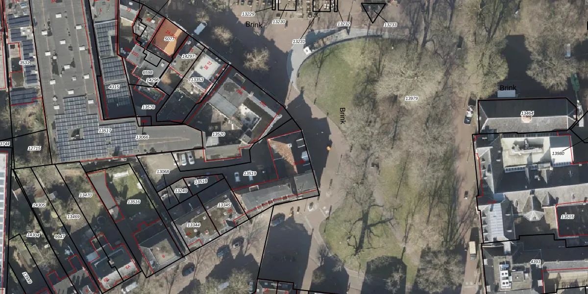 Het perceel waarop Brink 31 staat heeft een oppervlakte van 791 m². Dit is een groot perceel. De perceeloppervlakte wordt geregistreerd door het Kadaster. Gedetailleerde informatie over de maten van dit perceel kunt u vinden in het rapport Kadastrale kaart met maatvoering van Brink 31.