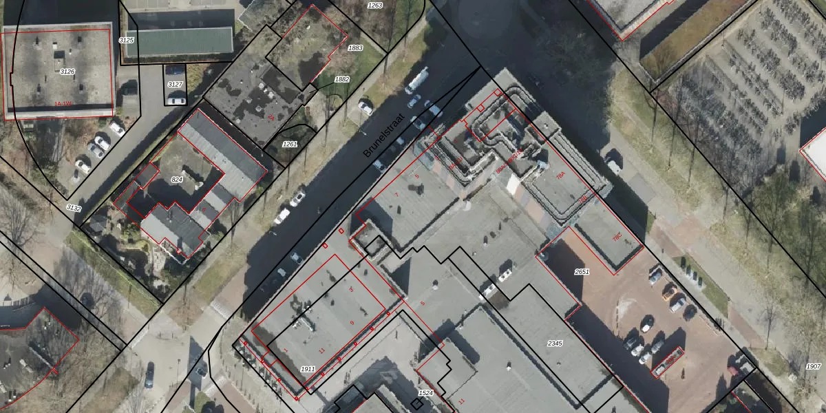 Het perceel waarop Brunelstraat 11-H staat heeft een oppervlakte van 4650 m². Dit is een zeer groot perceel. De perceeloppervlakte wordt geregistreerd door het Kadaster. Gedetailleerde informatie over de maten van dit perceel kunt u vinden in het rapport Kadastrale kaart met maatvoering van Brunelstraat 11-H.