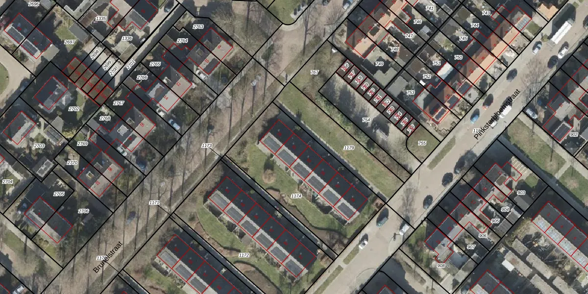 Het perceel waarop Brunelstraat 31 staat heeft een oppervlakte van 1248 m². Dit is een zeer groot perceel. De perceeloppervlakte wordt geregistreerd door het Kadaster. Gedetailleerde informatie over de maten van dit perceel kunt u vinden in het rapport Kadastrale kaart met maatvoering van Brunelstraat 31.