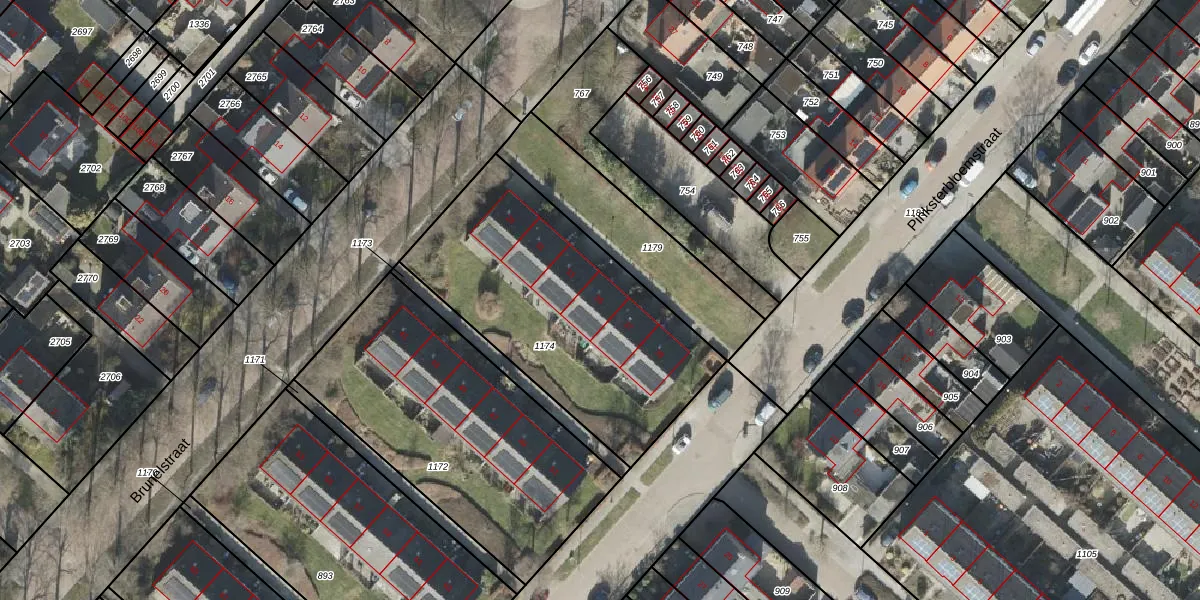 Het perceel waarop Brunelstraat 35 staat heeft een oppervlakte van 1248 m². Dit is een zeer groot perceel. De perceeloppervlakte wordt geregistreerd door het Kadaster. Gedetailleerde informatie over de maten van dit perceel kunt u vinden in het rapport Kadastrale kaart met maatvoering van Brunelstraat 35.