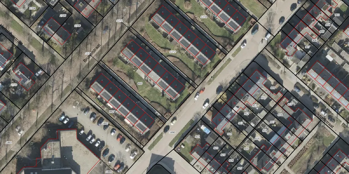 Het perceel waarop Brunelstraat 63 staat heeft een oppervlakte van 1248 m². Dit is een zeer groot perceel. De perceeloppervlakte wordt geregistreerd door het Kadaster. Gedetailleerde informatie over de maten van dit perceel kunt u vinden in het rapport Kadastrale kaart met maatvoering van Brunelstraat 63.
