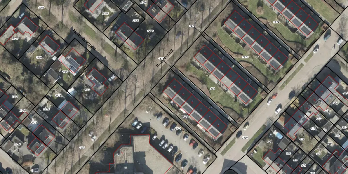 Het perceel waarop Brunelstraat 65 staat heeft een oppervlakte van 936 m². Dit is een groot perceel. De perceeloppervlakte wordt geregistreerd door het Kadaster. Gedetailleerde informatie over de maten van dit perceel kunt u vinden in het rapport Kadastrale kaart met maatvoering van Brunelstraat 65.