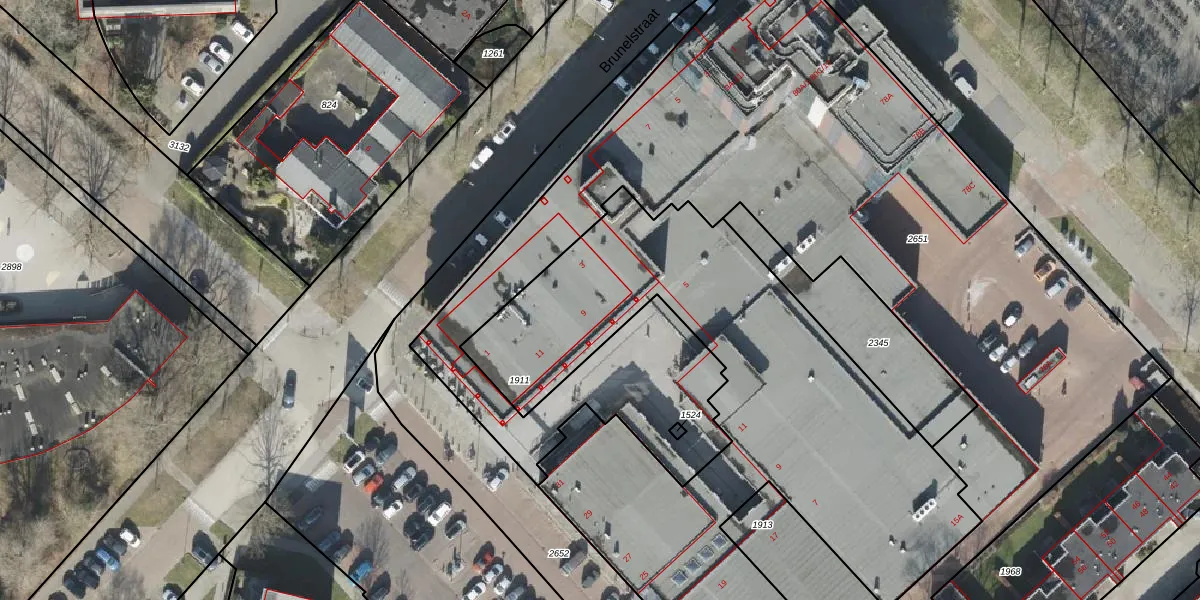 Het perceel waarop Brunelstraat 9-F staat heeft een oppervlakte van 3172 m². Dit is een zeer groot perceel. De perceeloppervlakte wordt geregistreerd door het Kadaster. Gedetailleerde informatie over de maten van dit perceel kunt u vinden in het rapport Kadastrale kaart met maatvoering van Brunelstraat 9-F.