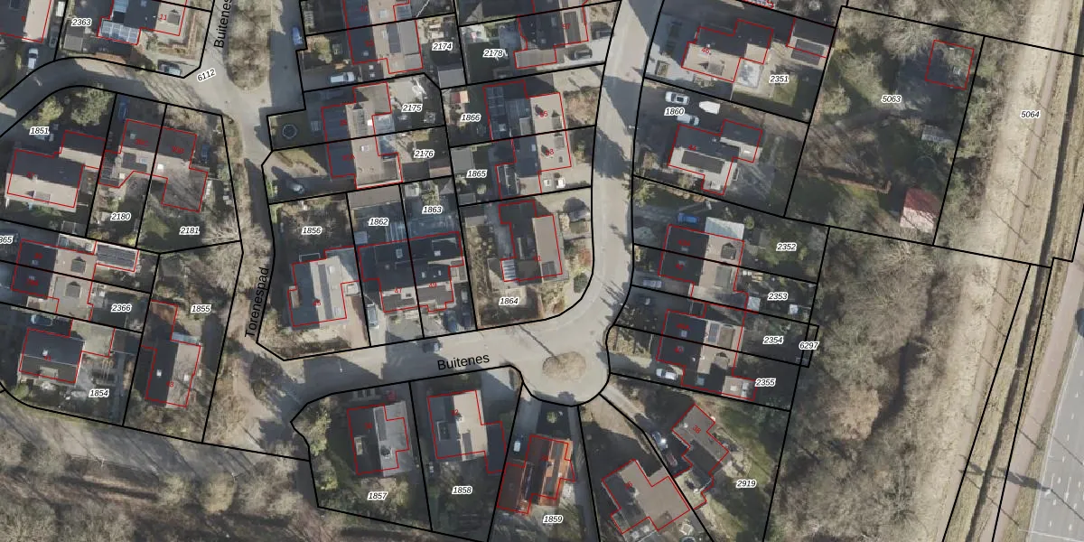 Het perceel waarop Buitenes 51 staat heeft een oppervlakte van 523 m². Dit is een groot perceel. De perceeloppervlakte wordt geregistreerd door het Kadaster. Gedetailleerde informatie over de maten van dit perceel kunt u vinden in het rapport Kadastrale kaart met maatvoering van Buitenes 51.