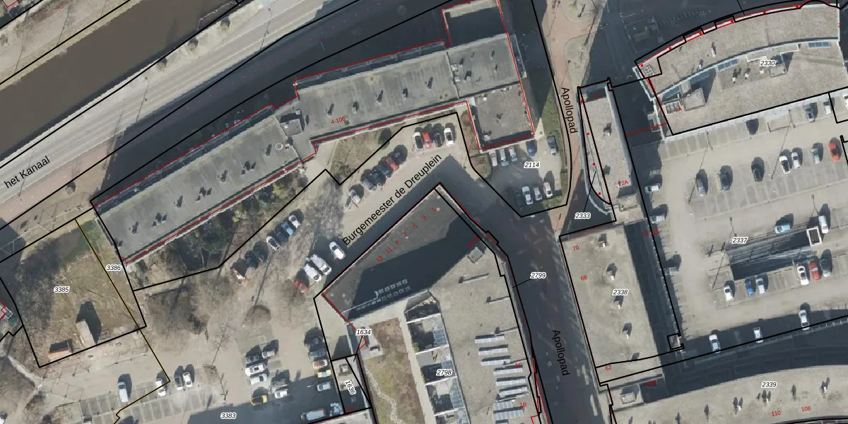 Het perceel waarop Burgemeester de Dreuplein 3 staat heeft een oppervlakte van 2462 m². Dit is een zeer groot perceel. De perceeloppervlakte wordt geregistreerd door het Kadaster. Gedetailleerde informatie over de maten van dit perceel kunt u vinden in het rapport Kadastrale kaart met maatvoering van Burgemeester de Dreuplein 3.