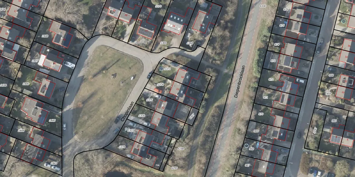 Het perceel waarop Chopinlaan 13 staat heeft een oppervlakte van 322 m². Dit is een groot perceel. De perceeloppervlakte wordt geregistreerd door het Kadaster. Gedetailleerde informatie over de maten van dit perceel kunt u vinden in het rapport Kadastrale kaart met maatvoering van Chopinlaan 13.