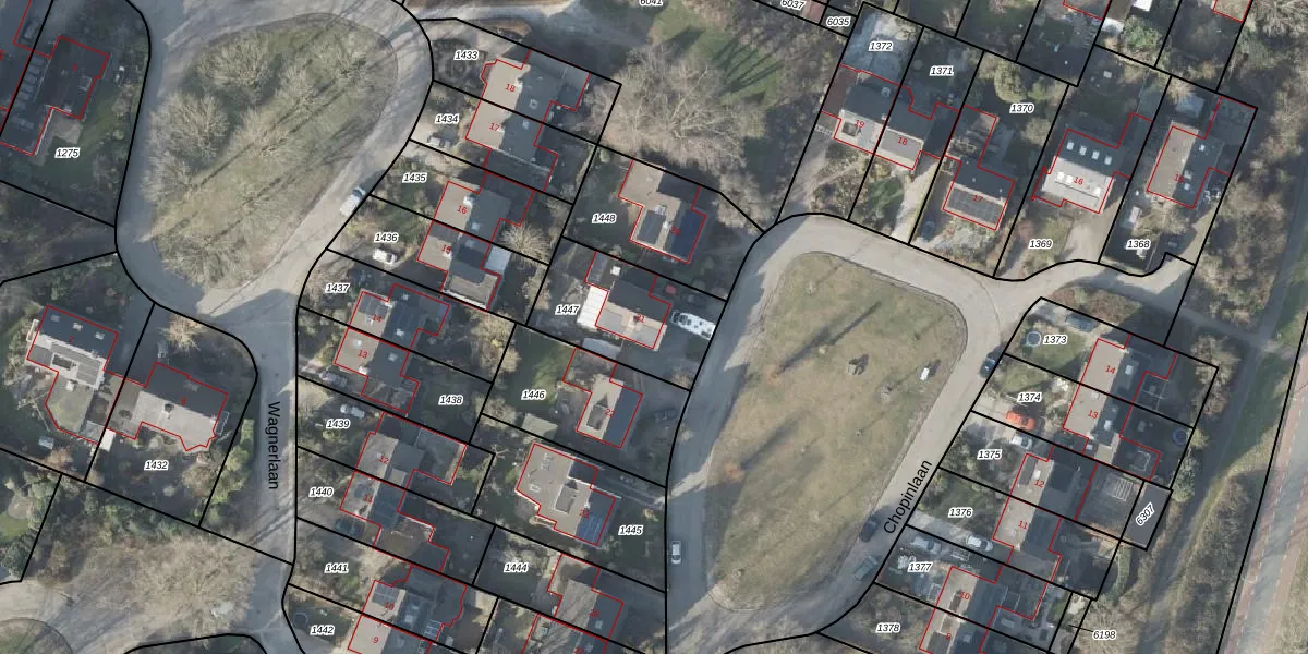 Het perceel waarop Chopinlaan 21 staat heeft een oppervlakte van 408 m². Dit is een groot perceel. De perceeloppervlakte wordt geregistreerd door het Kadaster. Gedetailleerde informatie over de maten van dit perceel kunt u vinden in het rapport Kadastrale kaart met maatvoering van Chopinlaan 21.