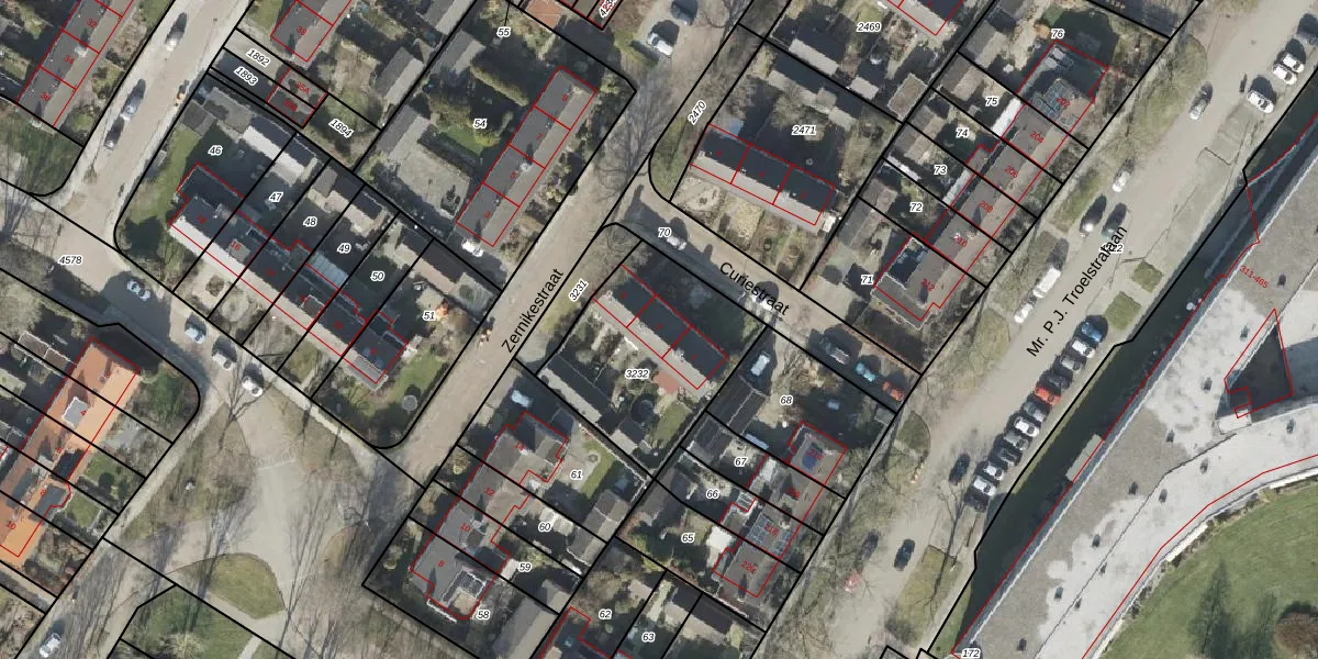 Het perceel waarop Curiestraat 3 staat heeft een oppervlakte van 643 m². Dit is een groot perceel. De perceeloppervlakte wordt geregistreerd door het Kadaster. Gedetailleerde informatie over de maten van dit perceel kunt u vinden in het rapport Kadastrale kaart met maatvoering van Curiestraat 3.
