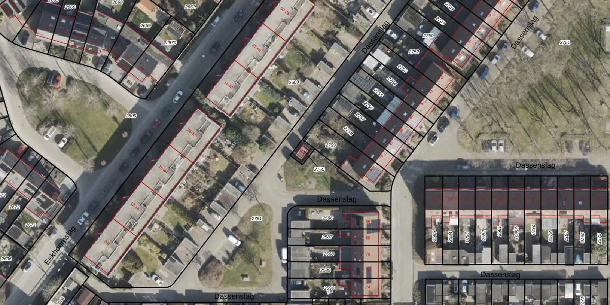Dassenslag 64-A is gelegen op kadastraal perceel ASN00Z2760. Deze kadastrale aanduiding is uniek en wordt gebruikt door het Kadaster om eigendomsrechten en andere zakelijke rechten vast te leggen. Het perceel maakt onderdeel uit van de kadastrale gemeente Assen.