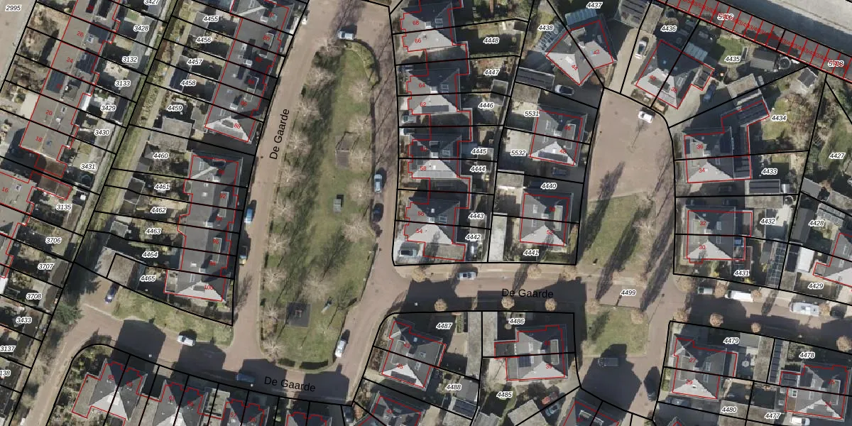 Het perceel waarop De Gaarde 56 staat heeft een oppervlakte van 175 m². Dit is een middelgroot perceel. De perceeloppervlakte wordt geregistreerd door het Kadaster. Gedetailleerde informatie over de maten van dit perceel kunt u vinden in het rapport Kadastrale kaart met maatvoering van De Gaarde 56.