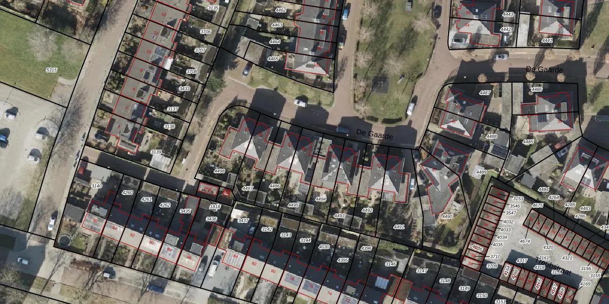 Het perceel waarop De Gaarde 59 staat heeft een oppervlakte van 223 m². Dit is een middelgroot perceel. De perceeloppervlakte wordt geregistreerd door het Kadaster. Gedetailleerde informatie over de maten van dit perceel kunt u vinden in het rapport Kadastrale kaart met maatvoering van De Gaarde 59.