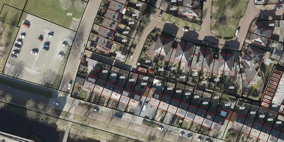 Het perceel waarop De Gaarde 65-B staat heeft een oppervlakte van 34 m². Dit is een klein perceel. De perceeloppervlakte wordt geregistreerd door het Kadaster. Gedetailleerde informatie over de maten van dit perceel kunt u vinden in het rapport Kadastrale kaart met maatvoering van De Gaarde 65-B.