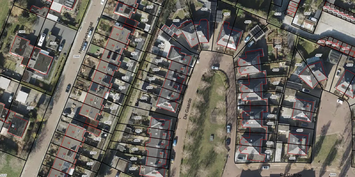Gebruik de zoekbalk of klik op een perceel voor informatie over de adressen binnen dit perceel.