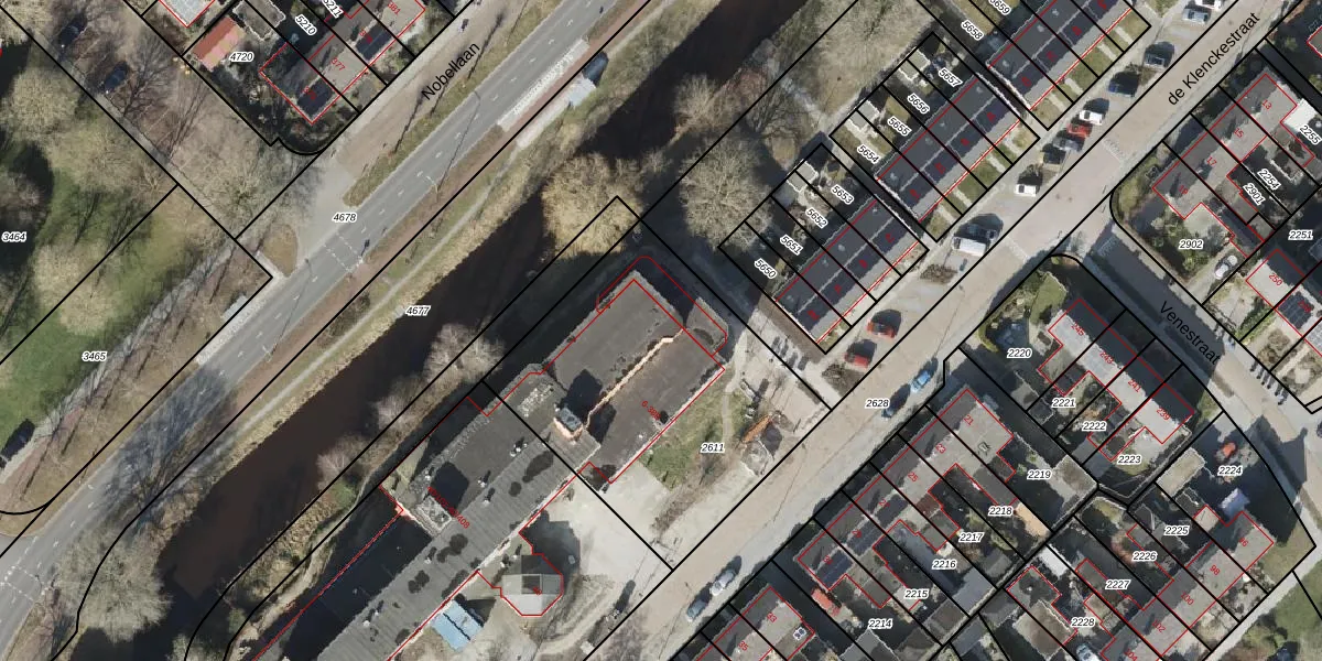 Het perceel waarop de Klenckestraat 32-A staat heeft een oppervlakte van 1395 m². Dit is een zeer groot perceel. De perceeloppervlakte wordt geregistreerd door het Kadaster. Gedetailleerde informatie over de maten van dit perceel kunt u vinden in het rapport Kadastrale kaart met maatvoering van de Klenckestraat 32-A.