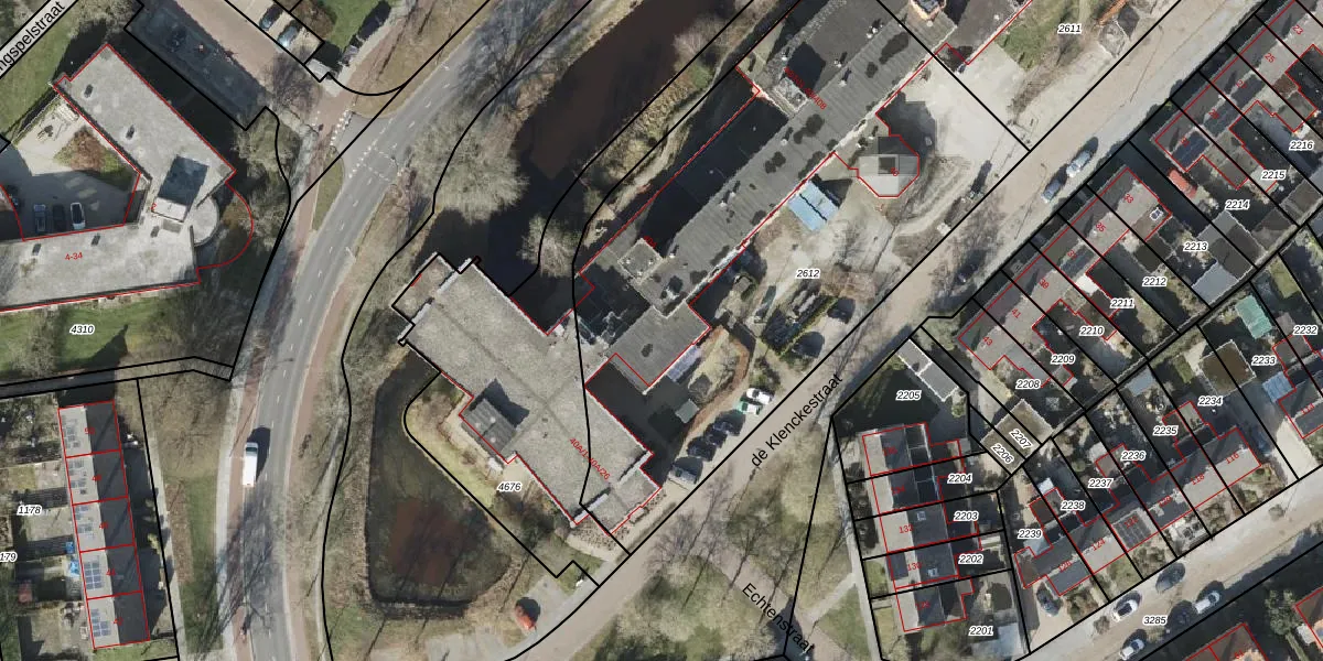 Het perceel waarop de Klenckestraat 40-208 staat heeft een oppervlakte van 3033 m². Dit is een zeer groot perceel. De perceeloppervlakte wordt geregistreerd door het Kadaster. Gedetailleerde informatie over de maten van dit perceel kunt u vinden in het rapport Kadastrale kaart met maatvoering van de Klenckestraat 40-208.