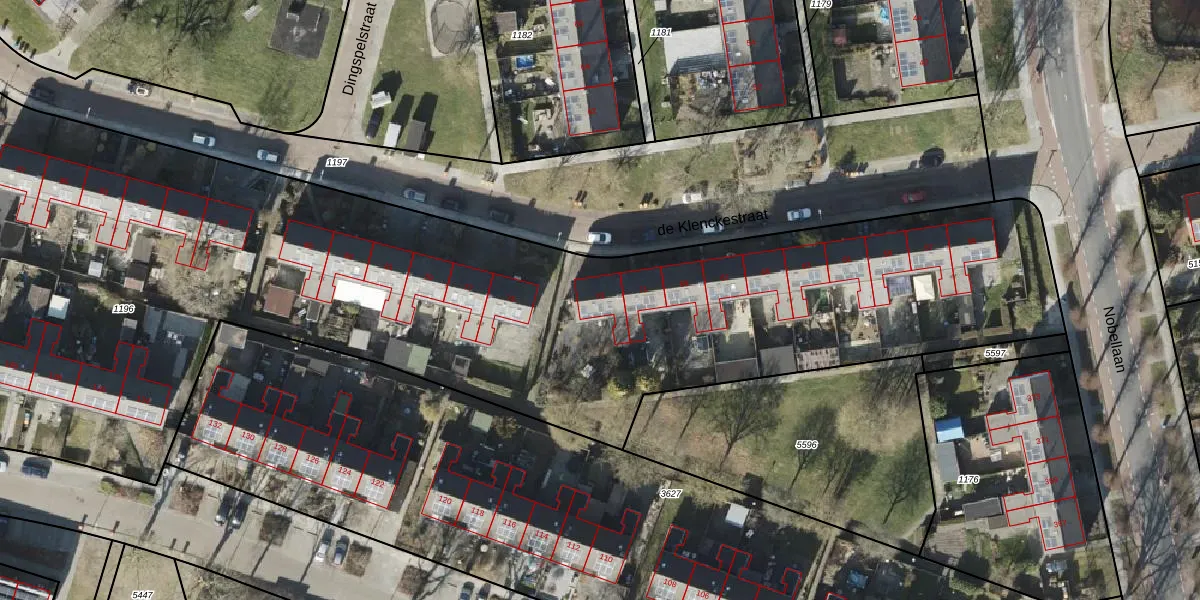 Het perceel waarop de Klenckestraat 73 staat heeft een oppervlakte van 9788 m². Dit is een zeer groot perceel. De perceeloppervlakte wordt geregistreerd door het Kadaster. Gedetailleerde informatie over de maten van dit perceel kunt u vinden in het rapport Kadastrale kaart met maatvoering van de Klenckestraat 73.
