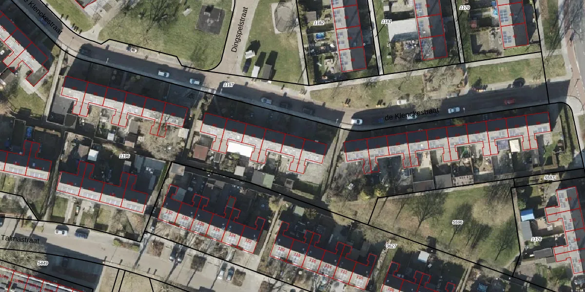 Het perceel waarop de Klenckestraat 77 staat heeft een oppervlakte van 9788 m². Dit is een zeer groot perceel. De perceeloppervlakte wordt geregistreerd door het Kadaster. Gedetailleerde informatie over de maten van dit perceel kunt u vinden in het rapport Kadastrale kaart met maatvoering van de Klenckestraat 77.