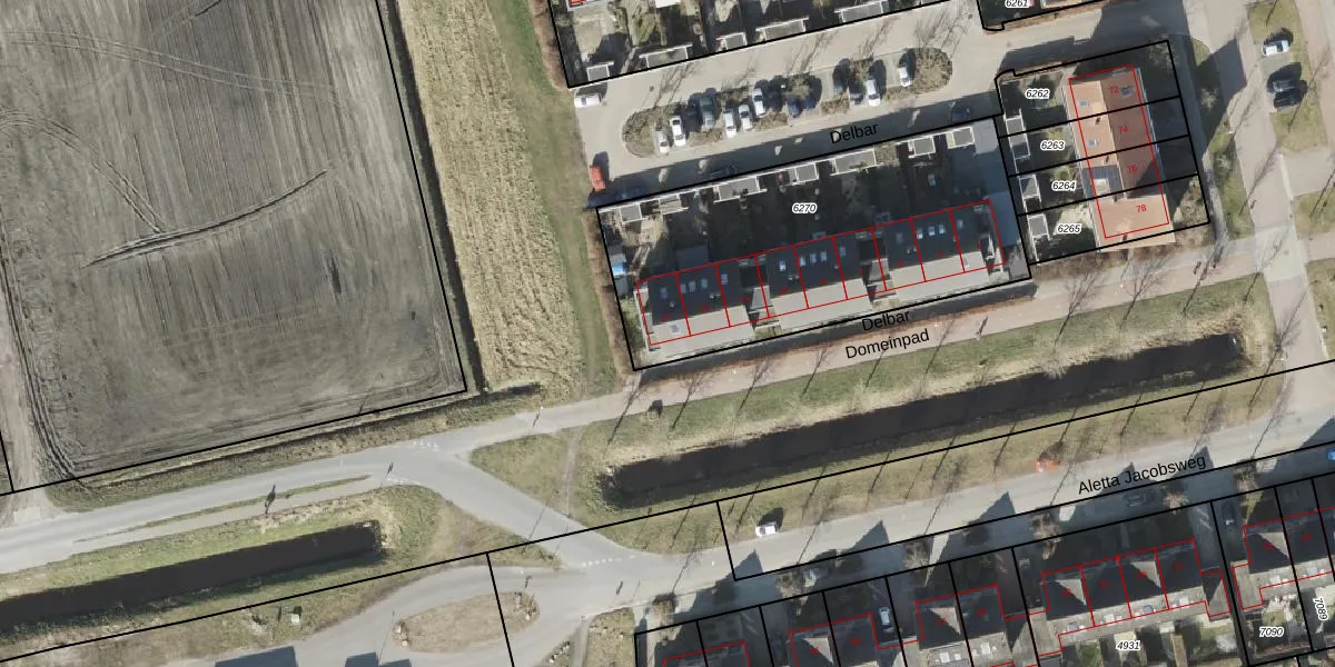 Het perceel waarop Delbar 17 staat heeft een oppervlakte van 1525 m². Dit is een zeer groot perceel. De perceeloppervlakte wordt geregistreerd door het Kadaster. Gedetailleerde informatie over de maten van dit perceel kunt u vinden in het rapport Kadastrale kaart met maatvoering van Delbar 17.