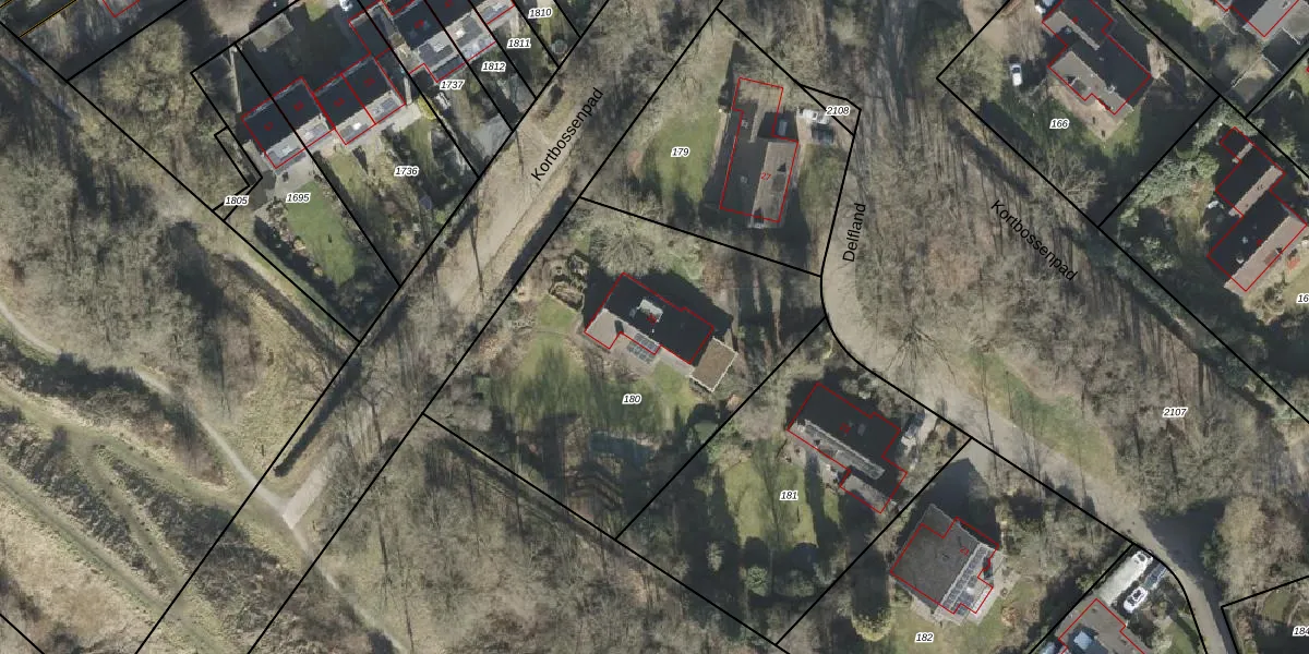 Het perceel waarop Delfland 25 staat heeft een oppervlakte van 1758 m². Dit is een zeer groot perceel. De perceeloppervlakte wordt geregistreerd door het Kadaster. Gedetailleerde informatie over de maten van dit perceel kunt u vinden in het rapport Kadastrale kaart met maatvoering van Delfland 25.