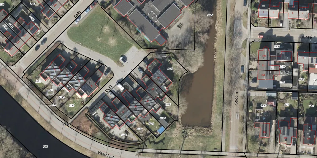 Gebruik de zoekbalk of klik op een perceel voor informatie over de adressen binnen dit perceel.