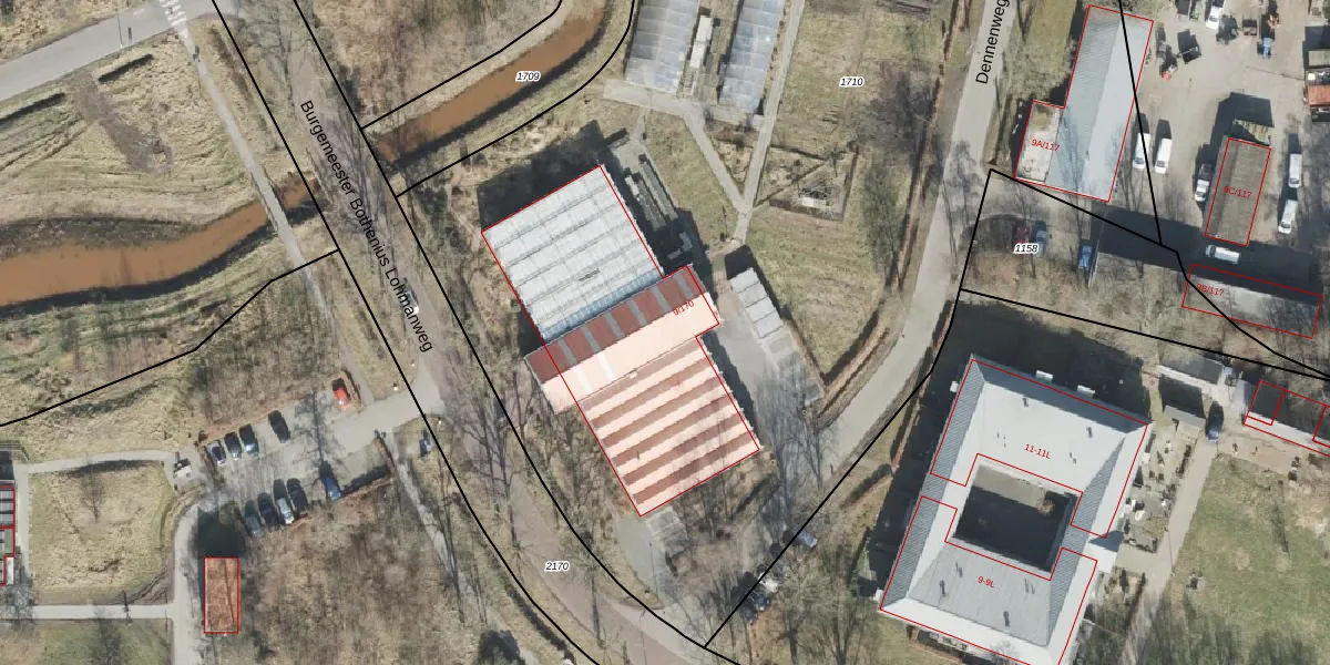 Het perceel waarop Dennenweg 9-170 staat heeft een oppervlakte van 7831 m². Dit is een zeer groot perceel. De perceeloppervlakte wordt geregistreerd door het Kadaster. Gedetailleerde informatie over de maten van dit perceel kunt u vinden in het rapport Kadastrale kaart met maatvoering van Dennenweg 9-170.