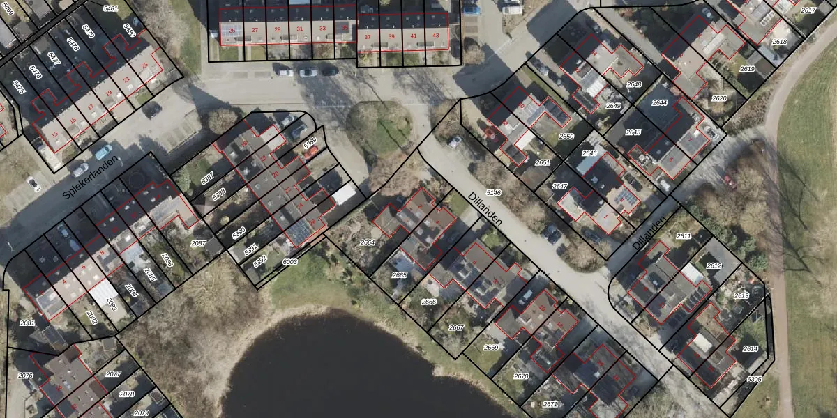 Gebruik de zoekbalk of klik op een perceel voor informatie over de adressen binnen dit perceel.