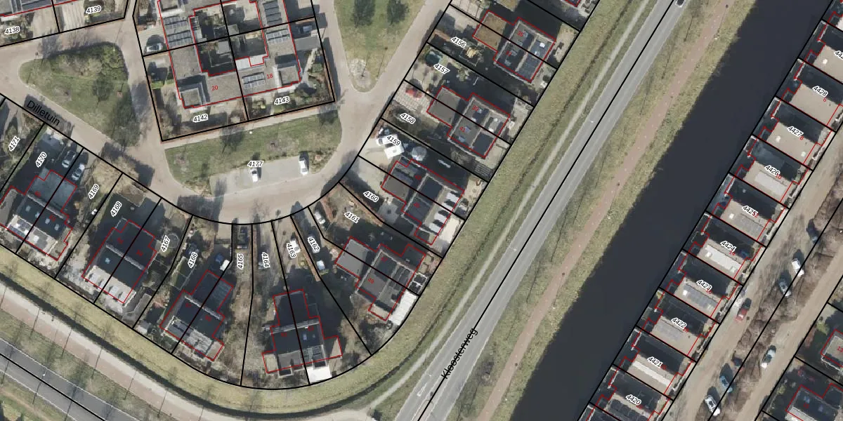 Dilletuin 45 is gelegen op kadastraal perceel ASN00Q4160. Deze kadastrale aanduiding is uniek en wordt gebruikt door het Kadaster om eigendomsrechten en andere zakelijke rechten vast te leggen. Het perceel maakt onderdeel uit van de kadastrale gemeente Assen.